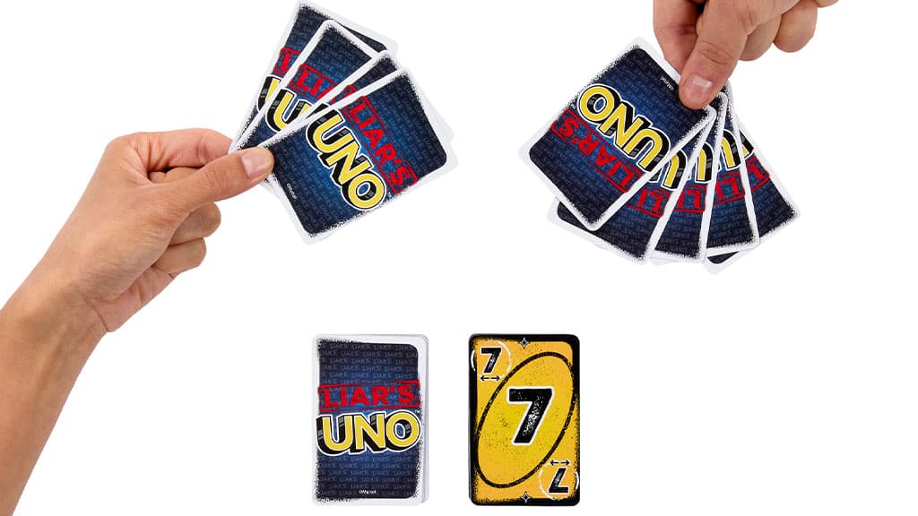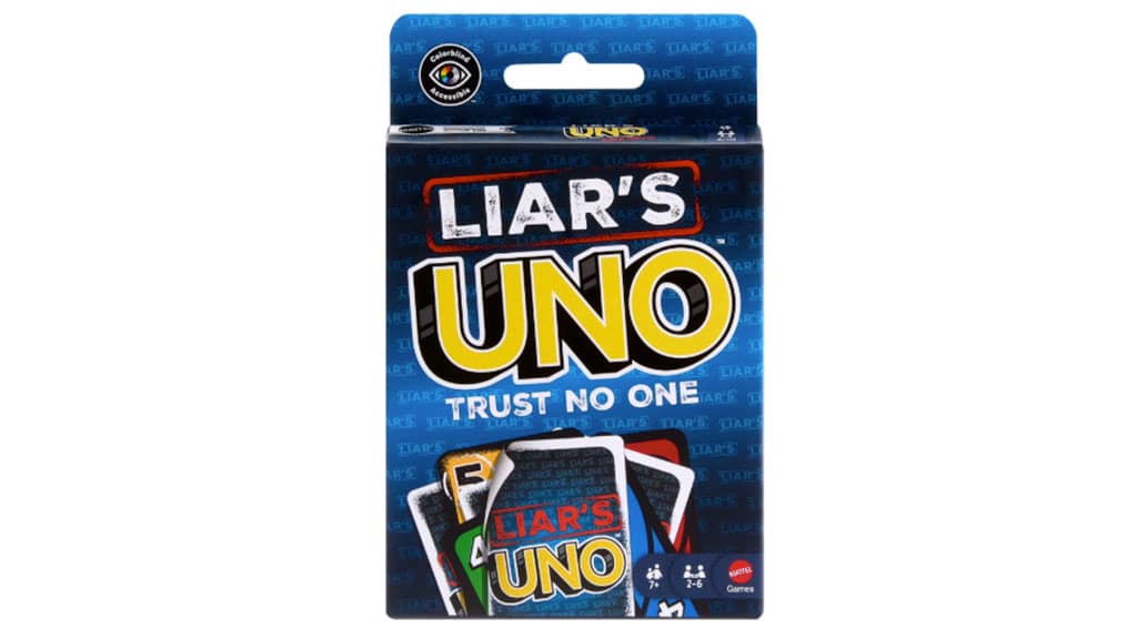 A Mattel UNO játékában a hazugság nem csalás, hanem a játék része! Ebben az UNO kiadásban 2-6 játékos, 7 éves kortól felfelé, versenyezhet, hogy kiderüljön, ki mond igazat, és ki blöfföl. Minden hagyományos számozott kártyához tartozik egy Liar kártya is, amelyet fekete alapszínéről lehet felismerni. A Liar kártyát lefordítva kell kijátszani, és a húzó játékosnak magabiztosan be kell mondania a kártya számát. Ha rajtakapják, hogy hazudott, újabb kártyát kell húznia. Viszont ha igazat mondott, akkor a vádaskodónak kell húznia egy lapot. A játékosok megtévesztéssel próbálnak győzelemhez jutni, de egy örök szabály változatlan marad: amikor valakinek csak egy lap marad a kezében, ki kell kiáltania: UNO!