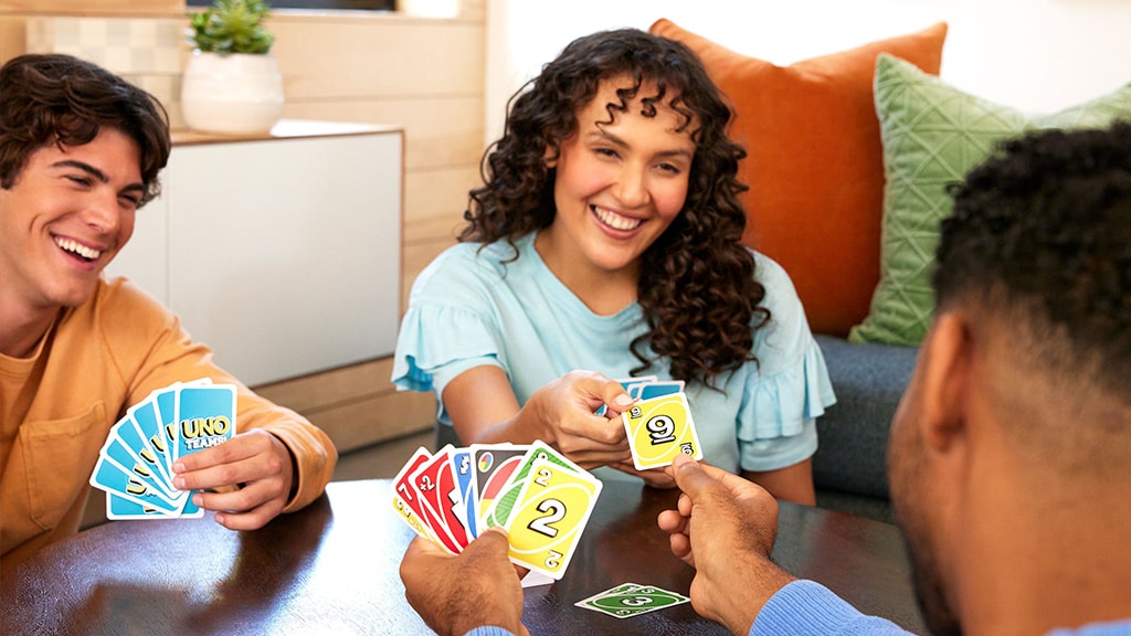 Ebben a klasszikus kártyajáték újragondolt változatában a játékosok kétfős csapatokban játszanak, és az a céljuk, hogy minél előbb az utolsó lapjukra fogyjanak. Ehhez a játékosoknak a kezükben lévő lapok színét vagy számát kell egyeztetniük az eldobott lap tetején lévő kártyával. Ez a változat tartalmaz Átadó Szimbólum kártyákat is, amelyek segítségével a csapattagok kártyákat cserélhetnek egymás között, így még izgalmasabbá és taktikusabbá válik a játék.
