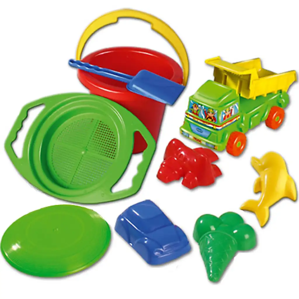 Homokozó szett szortiment, 9db elemmel. A delfines, kamionos és locsolókannás homokozószettek minden gyermek számára segítséget nyújtanak a kreatív játékban. Irány a homokozó, és máris megépítheted a legnagyobb várat, vagy megformázhatod a legfinomabb tortákat!