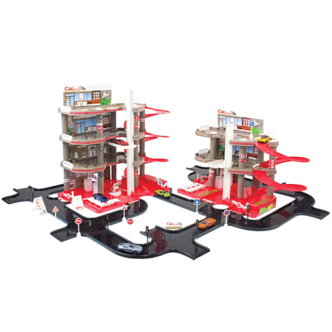 Egy különleges parkolóházat szerezhetsz be most gyermekednek, aki nagyon örülni fog majd neki, hiszen egy mega parkolóházról van szó. A szettben két parkolóház található meg, melyek közül az egyik 3 a másik pedig 4 szintes, a kettő között pedig kiegészítő utak is megtalálhatóak. A parkolóházak legfelső szintjén autószervizek találhatóak, ahol az autók karbantartását lehet elvégezni, majd az alsó szinten még meg is tankolhat. Ide vagy lifttel vagy spirális úton lehet feljutni, ám sorompók és közlekedési táblák lassíthatják a forgalmat. A szetthez nem tartozik autó.