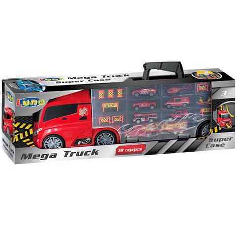 Szinte minden kisfiú rajong a különféle kisautókért, de azok közül is a tűzoltósági járművek külön kedvencnek számítanak, éppen ezért remek választás ez a kamion, ami akár több mint egy tucat kisautónak is helyet képes adni, és már érkezéskor lesz benne hat vagány tűzoltósági járgány. A több mint hatvan centiméteres Mega kamion oldala lenyitható, és a raktérben öt kisautó és egy helikopter is található, amelyek a részletgazdag kidolgozásuk miatt nagyon izgalmas játékélménnyel kecsegtetnek, ráadásul a kisautók mellett néhány terelőbója és útlezáró korlát is helyet kapott. Ezen felül a kamion nyergesvontató része úgy lett kialakítva, hogy a tetején bedobva a kocsit, az a kamion elején száguld kifelé.