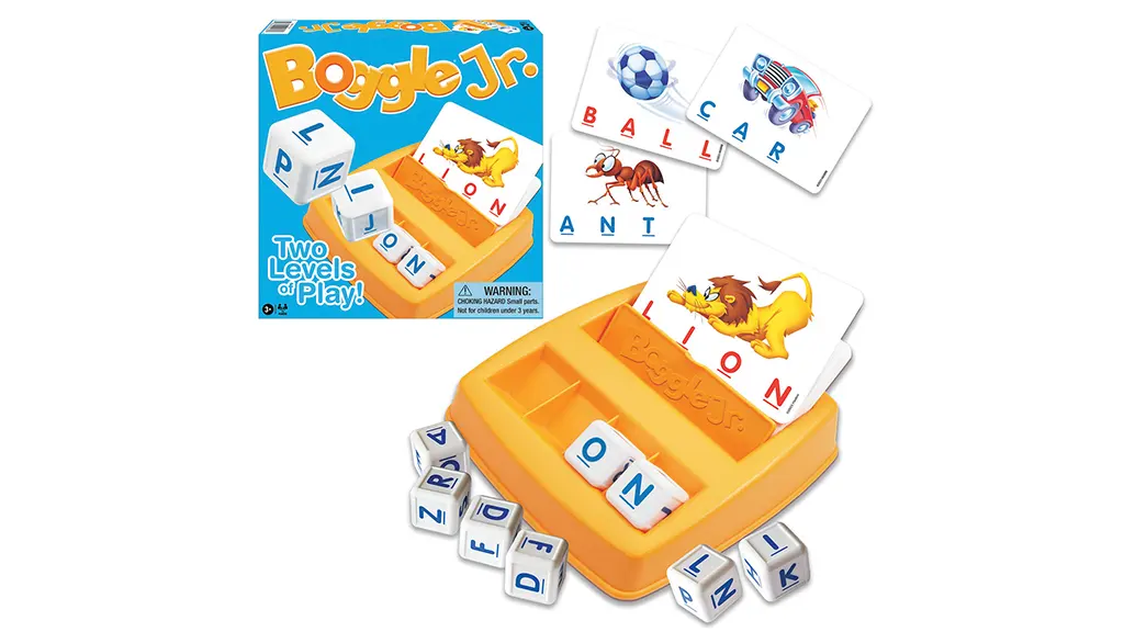 A Boggle Jr. segít az óvodásoknak betűket szavakká alakítani, és a szülők értékelni fogják a többféle játékmódot. Először is, a fiatalabb játékosok koncentrálhatnak a hárombetűs szavakat tartalmazó kártyákra. A kártya állványba helyezése lehetővé teszi a gyermek számára, hogy lássa a képet. Megnézhetik a képet leíró betűket, és megtalálhatják a képhez illő betűkockákat. Ahogy haladnak, használhatják a fedelet a szó (és a szót alkotó betűk) elrejtésére. Ezután a gyermeknek fel kell idéznie a kifejezést, hogy leírja a képet (például autó vagy oroszlán).