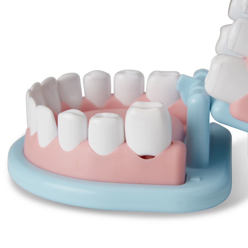 A készlet középpontjában egy nagyméretű, nyitható műanyag fogsor áll, amelyen a gyerekek gyakorolhatják a fogmosást, a tisztítást, a fogtömést vagy éppen a foghúzást. A hátsó fogak mozgathatók és kivehetők, így a kis fogorvosok még a „kihúzás” élményét is kipróbálhatják. A csomag része továbbá egy vibráló fogászati eszköz, cserélhető polírozó- és fúrófejekkel, valamint egy fogkefe, fogkrém, szájvíz, vizsgálótükör, csipesz, maszk, azonosítókártya, két gézlap és több fogászati kiegészítő, mint fogszabályozó és retainer.