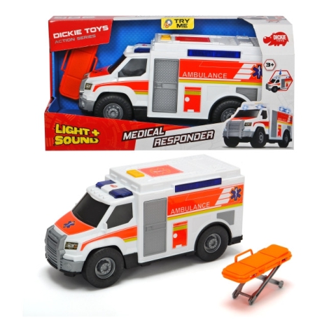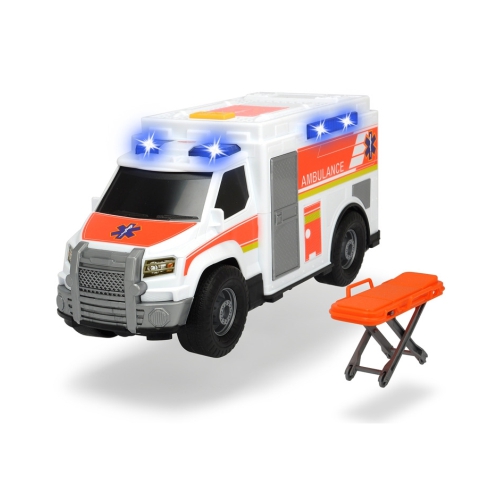 Itt a lehetőség, hogy kipróbálj egy igazán szuper mentőautót, amit az igazi mentőszolgálatok is használnak. Ez a tetszetős masina élénk matricákkal van ellátva, akár a valódi mentőkocsik és ráadásul még gombnyomásra fény- és hangeffektekkel is szórakoztatja a kicsiket. A kocsihoz természetesen egy hordágy is tartozik, melyre a gyerekek figurákat is tehetnek. A kocsi szabadon futó kerekekkel van ellátva, hogy a legkisebbek számára is könnyű legyen a játék.
