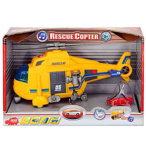 Siess a helikoptereddel, hiszen a sebesültek már várják a segítséget! A mentőhelikopterrel a nehezen megközelíthető helyeken is akcióba tudsz lépni, hiszen a manuális csörlővel a hordágyat leengedheted, majd a sebesülttel együtt visszahúzhatod, és repülhettek egyenesen a kórházba. A nagy méretű helikopter propellere forgatható, keresőfénye gombnyomásra világítani kezd. Hallgasd a hangokat és kezdődjön az izgalmas mentőakció a helikopter fedélzetén!