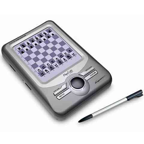 Hordozható sakkgép. Kezdőktől a versenyjátékosokig mindenkinek ajánlott. (Játékerő: 4)