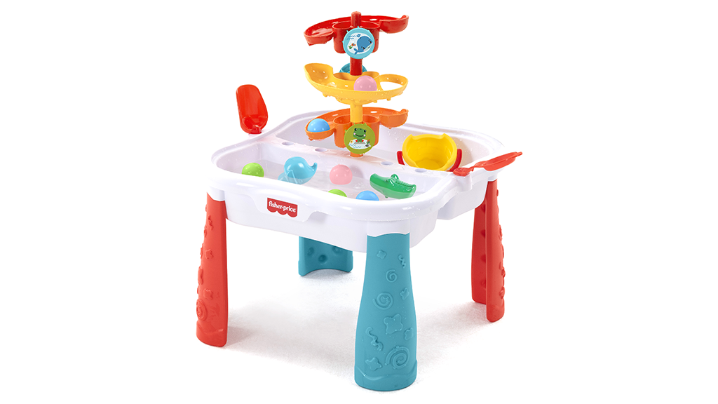 A gyerekek fejleszthetik a finommotoros készségeiket, a kéz-szem koordinációjukat és a szociális készségeiket, miközben ezzel a vízi asztallal játszanak. Az asztal tartalmaz "golyópálya csúszdákat" forgókkal, egy lapátot, egy vödröt, egy golyókat kilövő szerkezetet, állatfigurás spriccelőket és golyókat. Mindkét oldal 1,8 gallon vizet képes befogadni.