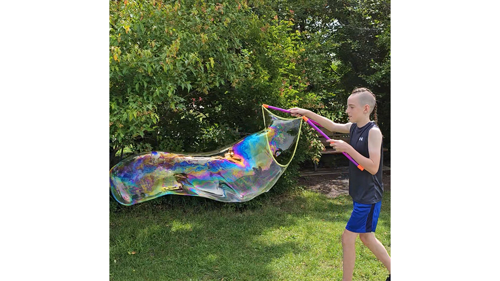 Készíts akár 3 méter hosszú buborékokat! Ez a készlet tartalmaz 450 ml nem mérgező buborékoldatot, egy pálcát és egy tálcát. Tökéletes szabadtéri játékhoz és nyári szórakozáshoz.