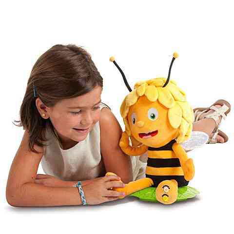 Figyelj a bájos Majára, a kis méhecskére aki mindig izgalmas történetekkel szórakoztat. Ezúttal azonban nem a TV képernyőjén vagy a mesekönyvek lapjain tűnik fel, hanem egy valódi Maja plüssfigura meséli el neked a kalandokat. A gombot megnyomva választhatsz hogy dalokat vagy meséket akarsz hallani tőle, és Maja máris nekikezd. Mesélés és dalolás közben testét és száját is mozgatja, így lesz igazán élethű a játék. Válaszolj Maja kérdéseire is a gombokat használva!