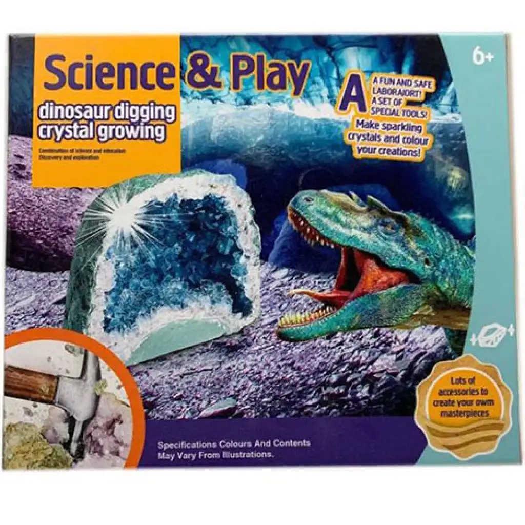 A dinoszauruszok több millió évvel korábban uralták a földet, és sok lélegzetelállító ékkő és kristály az ő idejükben keletkezett, hogy aztán évmilliókkal később minket is lenyűgözzenek. Ahhoz, hogy te magad is szert tegyél egy ilyen csodás kristályra, nem kell reménykedned az időgép feltalálásában, hiszen magad is készíthetsz egyet. Ebben a csomagban minden megtalálható amivel a gyerekek maguk növeszthetnek különféle színű és formájú kristályokat, amelyek aztán minden bizonnyal a szoba legszebb díszei lesznek, és ehhez nem kell mást tenni, mint követni a képekkel illusztrált útmutatóban leírtakat.