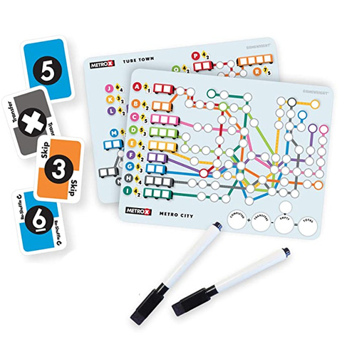 A Metro X egy könnyed, de gondolkodásra késztető flip and write játék, amelyben a játékosoknak meg kell tervezniük az utazásukat, és a lehető legtöbb metróállomást be kell járniuk. A játék elején minden játékos magához vesz egy metrótáblát. Döntsétek el, melyik térképet szeretnétek használni, és már indulhat is a versengés! Utazóként az lesz a feladatod, hogy okosan tervezve a lehető legtöbb vonalat "járd be" - és körben minél több megállót húzz ki a sorból. A játékvezető felfordítja a húzópakli felső kártyáját, majd mindenkinek el kell döntenie: mit kezd a kártyán lévő lehetőséggel. A játék szabályok egyszerűek, nincs holtidő, a táblákat egyszerűen le lehet törölni, így semmi akadálya annak, hogy egy gyors visszavágót is lezavarjanak a játékosok.