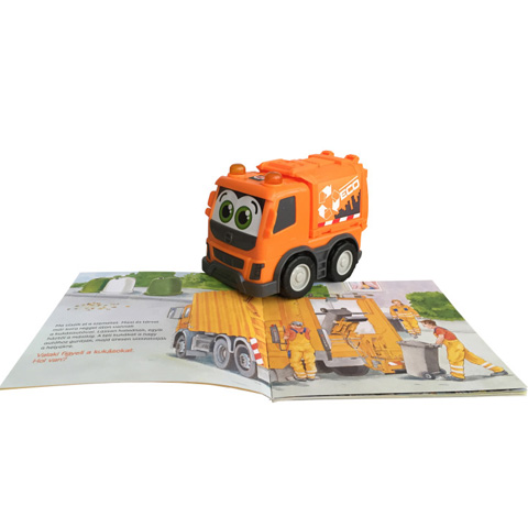 Élénk színű, hatalmas szemekkel ellátott autó formájában érkezik a gyerekekhez a kukásautó, melynek szabadon forgó kerekei garantálják a szabad játékélményt. A kicsik a kocsi mellett egy könyvet is találnak a szettben, mely a Mi Micsoda sorozat részeként betekintést nyújt egy kukásautó kalandjaiba. A kalandban társuk lesz a könyv főszereplője, Maxi, a kukás is. A kisautóval és a könyvvel izgalmas játékélmény várja a kicsiket!