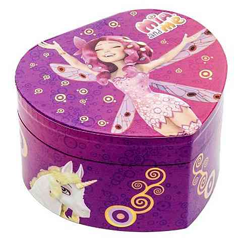 Tárold ékszereid vagy apró titkaid ebben a fantasztikus zenedobozban, melynek elég csak a hátulján lévő kart feltekerned, és kinyitáskor máris zenélni kezd a meseszép dobozka. A zene mellett belsejében egy pillangó is forogni kezd, majd lecsukáskor azonnal elhalkul. A doboz szív alakú, fedelének belseje egy kis tükröt is rejt. A Mia és Én rajongók szobájának csodaszép dísze lesz a zenedoboz, melyben minden apróságot tárolhatnak.