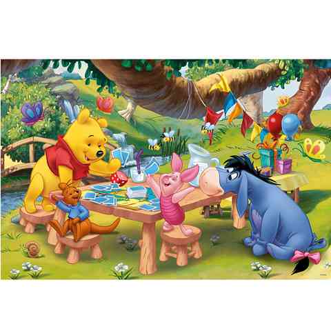 Mindig nagy a vidámság a 100 holdas pagonyban. Micimackó és barátai épp egy hatalmas kártyapartit tartanak, melyben malacka lett a nyertes. Ezt a 260 db-os puzzlet olyan gyerekeknek ajánljuk akik kedvelik Micimackó karakterét, és már jártasak a a kirakós játékokban.