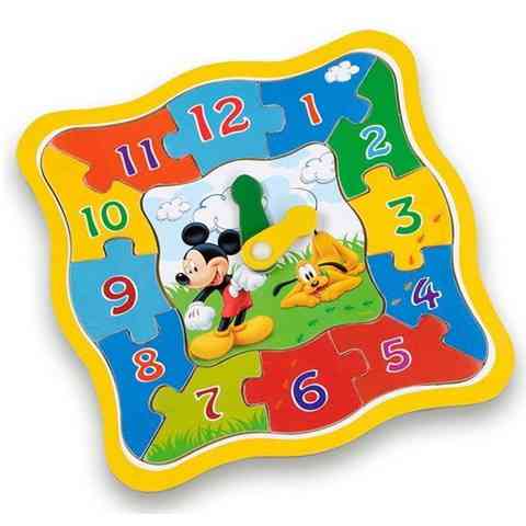 Egy igazán színes puzzle-t ajánlunk Neked. Mely nem csak a kirakózás örömeit kínálja játék közben, hanem elrepít a számok világába és eközben még az órával is megismerkedtet. Egy fa keretben találod a 12 számot, valamint a középen elhelyezkedő képet, amelyen kedvenc Disney hősünk Mickey egér egy réten játszik Plútóval éppen, és csak arra várnak, hogy segíthessenek Neked. Semmi más dolgod nincsen, mint, hogy ügyesen a helyükre illeszd a megfelelő elemeket, és a forgatható mutató segítségével megállapítsd, éppen mennyit üt akkor az óra. Ez a fa puzzle óra használat közben szinte észrevehetetlenül fejleszti a kézügyességet, a logikus gondolkodást, és a lenyűgöző színeknek köszönhetően a vizuális érzékelést.