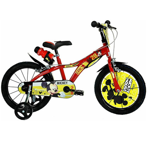 Ezzel a vagány bringával a gyerekek egészen biztos, hogy örömmel mennek a szabadba, hiszen a piros vázat Mickey egér mintája egészíti ki. Ezen kerékpárok gyártásánál a legfőbb szempont a biztonságos és kényelmes használat, egytől egyig ellenőrzött minőségben és kompromisszummentesen kerültek ki a gyártósorról. A biciklin található műanyag láncvédő, a pótkerekek és az erős patkófékek biztosítják a balesetmentes használatot, gyors és stabil fékezést. Az acélfelniken 16"-os gumik találhatók melyek teljes összhangban vannak a váz és a kiegészítők színvilágával, ráadásul remek tapadást és menettulajdonságot is biztosítanak. Dino Bikes kerékpárokkal a gyermek a közlekedés részese lehet.