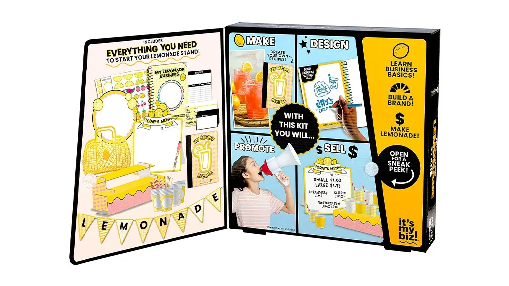 A csomag minden szükséges eszközt tartalmaz, amire egy gyereknek szüksége lehet egy limonádé árusító stand megnyitásához - csak citromot kell hozzáadni! A marketing anyagoktól kezdve a receptekig, a gyerekek azonnal elkezdhetik a munkát a doboz kibontása után. A csomag célja, hogy értékes leckéket tanítson a gyerekeknek a pénzzel való munkáról, a felelősségről, a kommunikációról és az időmenedzsmentről. Emellett rengeteg lehetőség van a kreativitásra is, a gyerekek tervezhetnek saját üzleti logókat, névjegykártyákat és még sok mást.