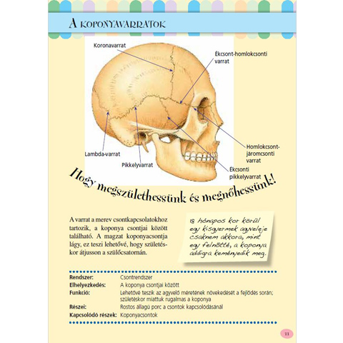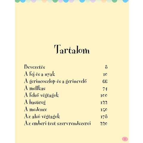 Az emberi test nagyon izgalmas és rengeteg érdekes dolgot tudhatsz meg ebből a könyvből. Tudtad például hogy a kisbabák koponyája csak 18 hónapos korukra nyeri el teljes keménységét, és ekkor már majdnem akkora az agyuk mint egy felnőtt emberé? Ilyen és hasonló érdekességeket tudhatsz meg a fejről és nyakról, a hasról, végtagokról és a gerincről is. Több mint 200 oldalon találsz illusztrációkat a leírásokhoz, és hidd el, lesem tudod majd tenni a könyvet. A könyv cérnafűzött és könnyen lapozható.