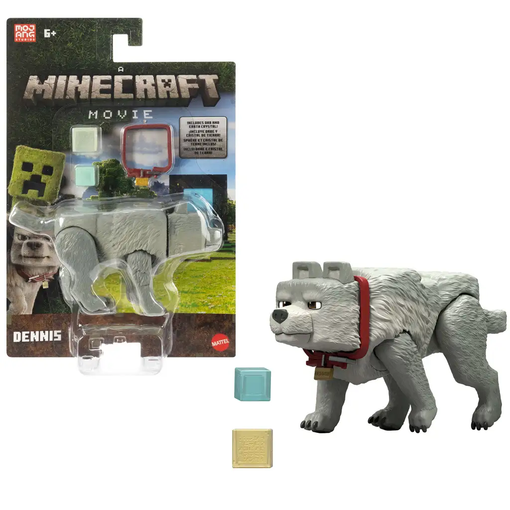 -Részletgazdag Minecraft Movie Dennis kutya figura
