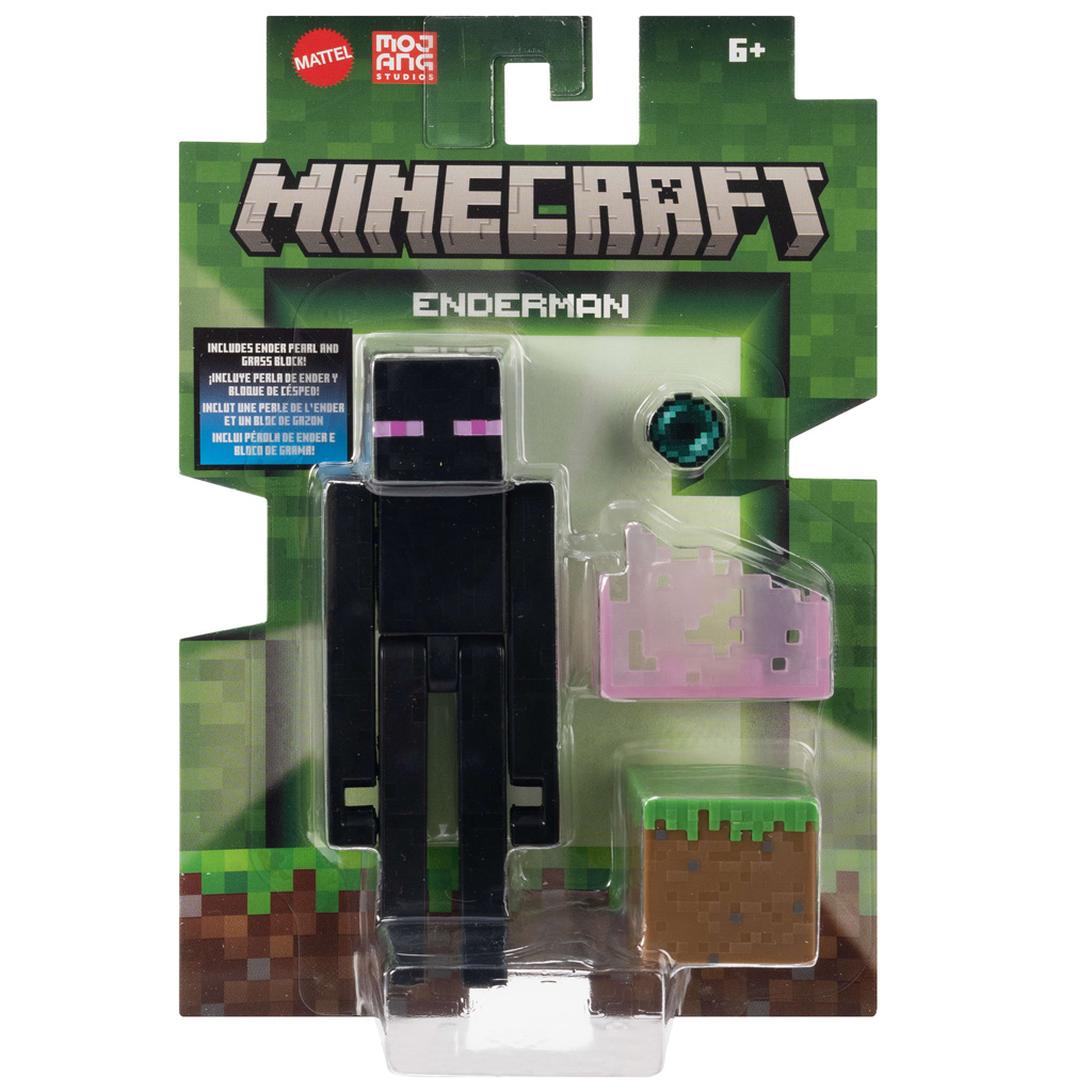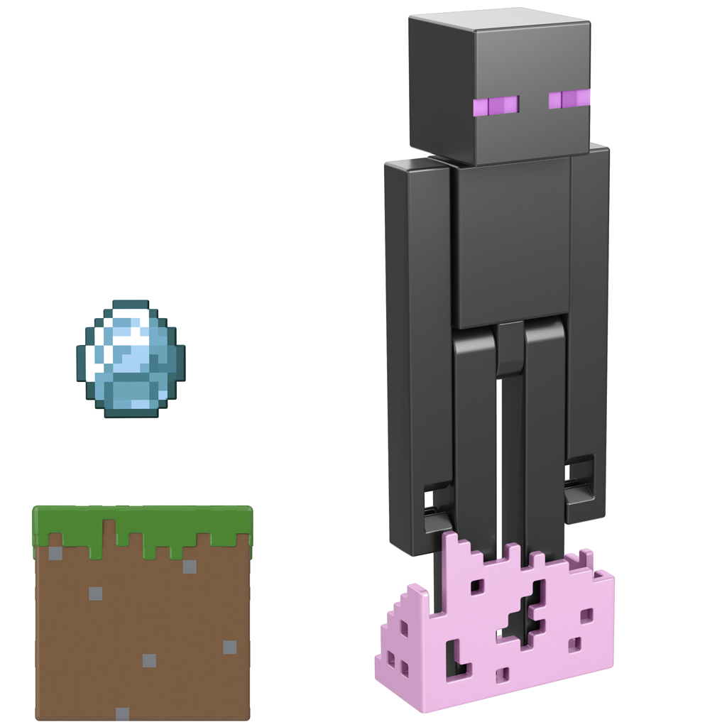 Az Enderman figura teljesen mozgatható végtagokkal rendelkezik, így a gyerekek és gyűjtők is könnyedén beállíthatják különféle pózokba, újrajátszva kedvenc játékmeneteket, jeleneteket vagy akár saját történeteket is kitalálva. A csomag tartalmazza a karakterhez illő ikonikus kiegészítőket is: egy Ender Pearl-t, egy fűkockát (Grass Block), valamint egy pixeles stílusú, rózsaszín blokkot, amelyekkel tovább fokozható a játékélmény.