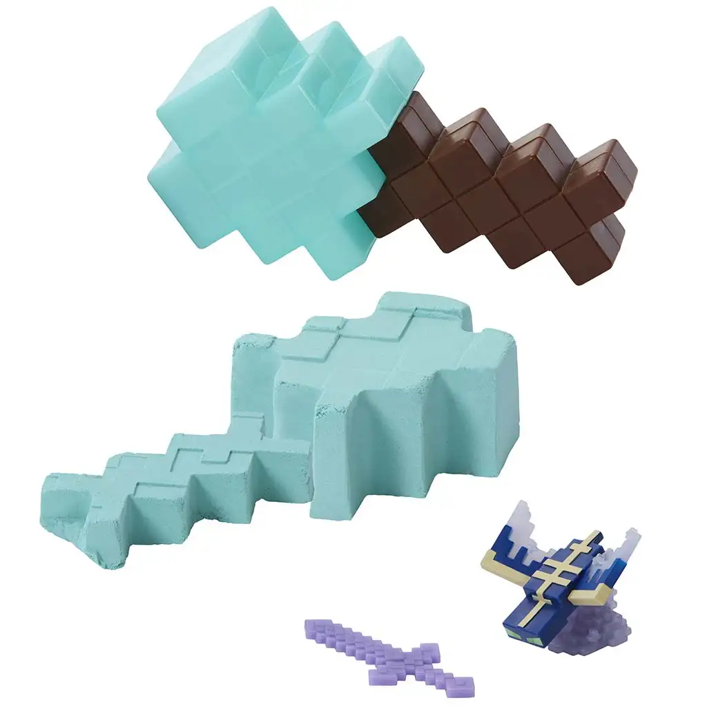 A készlet tartalmaz egy formázható homokot is, amely nemcsak a játékmenetet gazdagítja, de kreativitásra is ösztönzi a gyerekeket. A homok segítségével különféle alakzatokat formálhatnak, mintha csak a Minecraft világában lennének, ahol bányásznak, építenek és túlélnek. A játék tökéletesen visszaadja a Minecraft jellegzetes pixeles látványvilágát, így a gyerekek könnyen beleélhetik magukat a kalandokba.