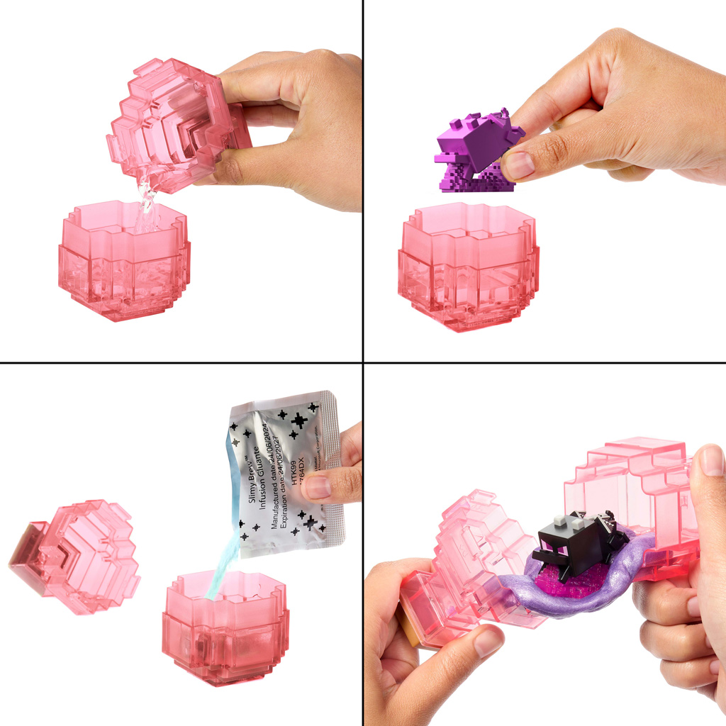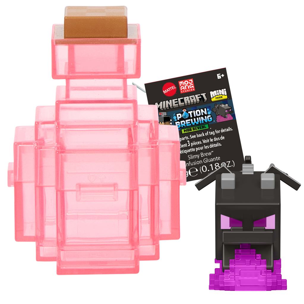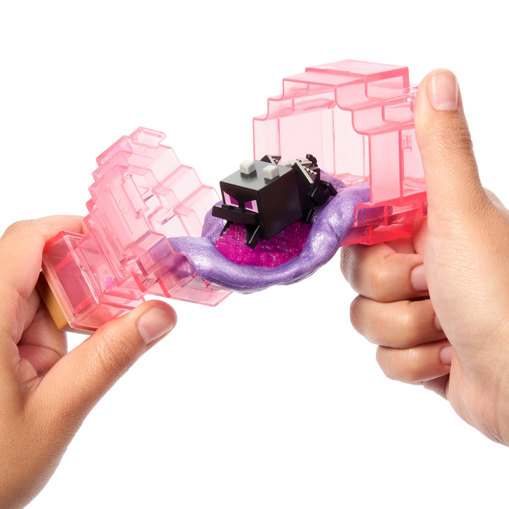 A csomag tartalmaz egy áttetsző rózsaszín bájital alakú tárolót, egy slime port és egy rejtett figurát. A gyerekek vizet adnak a tárolóhoz, majd belekeverik a slime port és beledobják a rejtélyes szürke figurát. Rázás után a nyálkás masszából kibukkan a valódi karakter – ezúttal egy félelmetes Ender Dragon fej, amelyből lila slime „láng” tör elő. A figura különleges pixeles részletességgel készült, teljes összhangban a Minecraft stílusával.