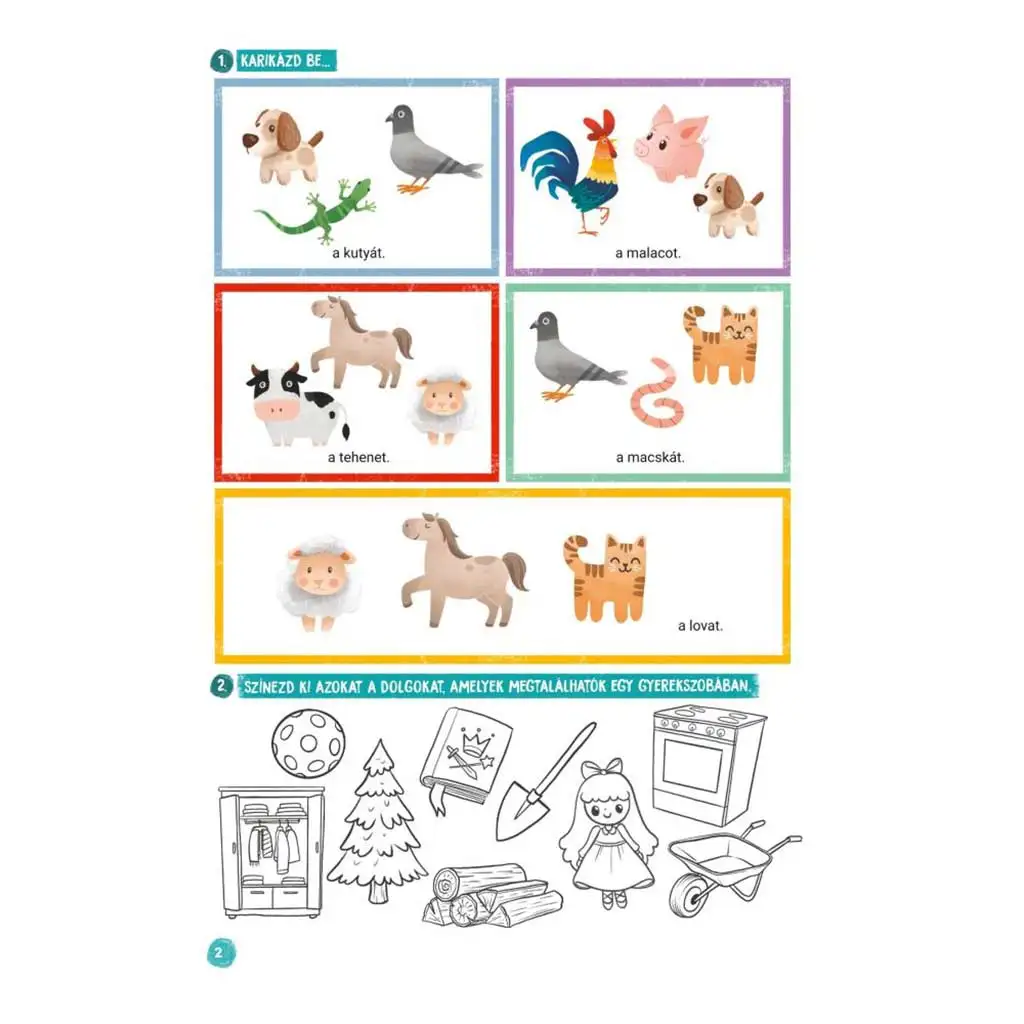 - Rajzok és színezők, amelyek fejlesztik a kreativitást és a finommotorikus képességeket.