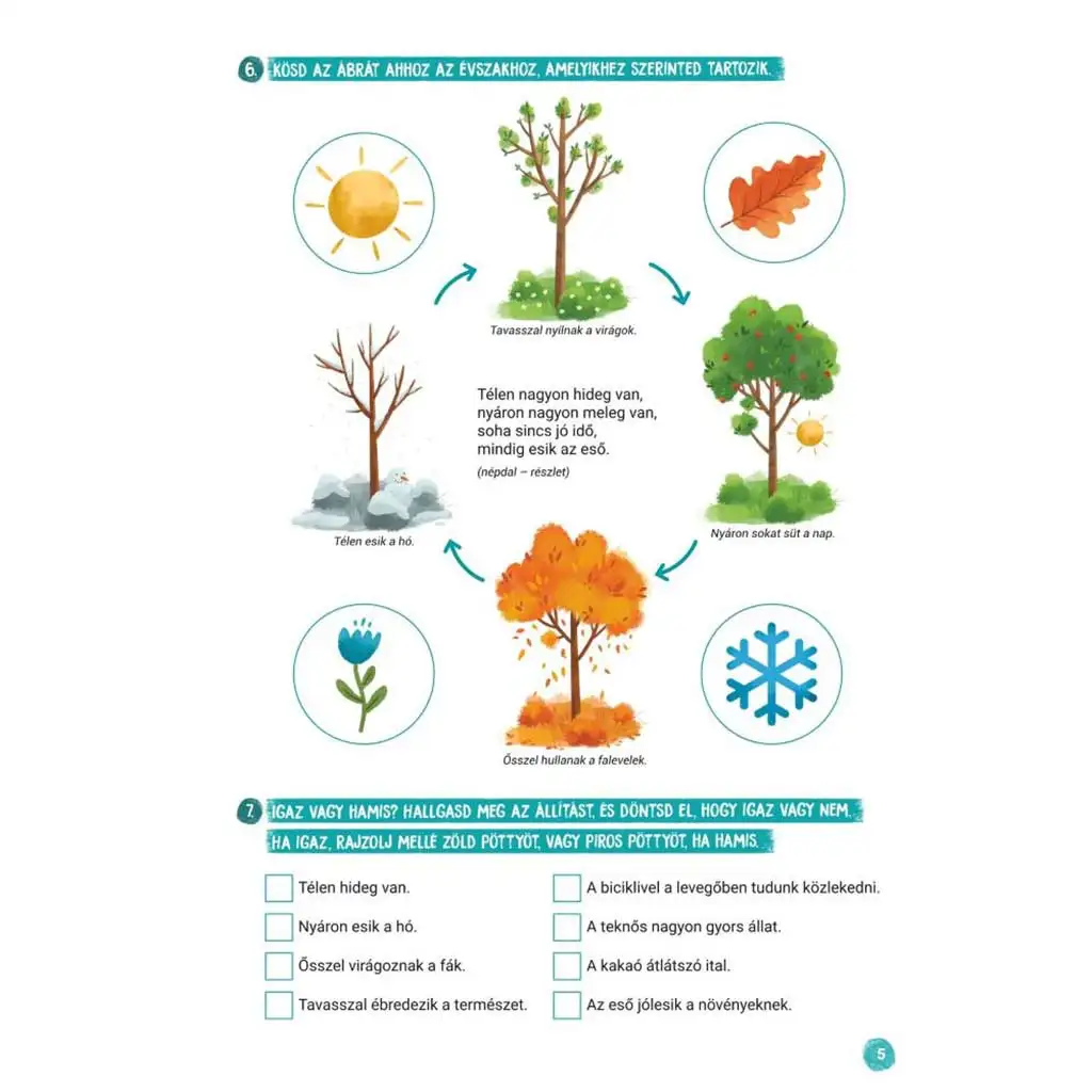 - Évszakok és természeti jelenségek megismerése: Interaktív feladatokon keresztül tanulhatnak az évszakok jellemzőiről és a természeti környezetről.