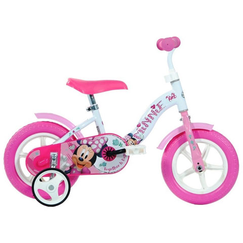 A Minnie egér festéssel ellátott 10 colos kerékpár segítségével a kislányok akár már 4 éves kortól megtanulhatnak biciklizni. A Dino Bikes hatalmas hangsúlyt fektet a biciklik gyártásánál a biztonságra, ezért minden egyes modellt különböző biztonsági eszközökkel láttak el, termékei kompromisszummentesek és garantálják a kényelmes, biztonságos használatot. A biciklin található műanyag sárvédők, a csúszásmentes gumi markolat, és a láncvédő a biztonságos használatért, az első keréknél található patkófék a tökéletes megállásért felelős. Az ergonómikus ülések 100%-ban antiallergének, így még az érzékeny bőrű gyerekek is maximális kényelemben ülhetnek biciklijükre. A műanyag extra erős kerekeken rózsaszín 10"-es tömör gumik találhatók melyek teljes összhangban vannak a váz és a kiegészítők színvilágával, remek tapadást és menettulajdonságot biztosítanak.