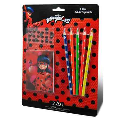 Ez a különleges szett kedvenc mesehősöddel, Katicabogárral van dekorálva, akit már jól ismerhetsz a Miraculous – katicabogár és Fekete macska sorozatból. A szett 6db színes ceruzát, egy noteszt és 28db öntapadós matricát tartalmaz. A csomagban található noteszba feljegyezhetsz mindent, amit nem szeretnél elfelejteni és a matricákkal feldekorálhatod legkedvesebb tárgyaidat, iskolaszereidet. A Miraculous az utóbbi idők egyik legnépszerűbb animációs mesefilm sorozata, így garantáltan elnyeri majd a gyerekek tetszését.