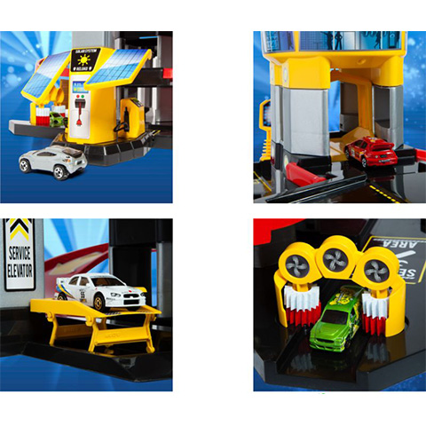 A kisautók egyetlen fiú gyerek játékai közül sem hiányozhatnak, így ennek a készletnek garantáltan nagy sikere lesz, hiszen végre lesz hol parkolni a kisautóknak. Ez a hat szintes, emeletes garázs nagyszerű játéklehetőséget kínál a kicsiknek, hiszen a kisautókkal az épületbe hajtva igénybe vehetik a liftet, ami az autót egyszerűen juttatja a legmagasabb szintre, ahonnan egy spirál lehajtón keresztül lehet kijutni. A parkolóházban nem csak parkolásra van lehetőség, hiszen kialakított hely van az autómosó és a szervizállomás számára is.
