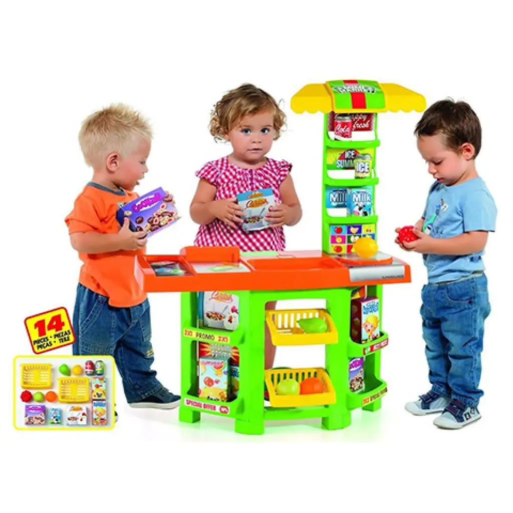 A gyerekek szeretnek minden olyan dolgot csinálni amit a felnőttektől látnak, így ez alól természetesen a vásárlás sem kivétel, és ennem a játék készletnek köszönhetően egy pillanat alatt boltot varázsolhatunk a gyerekek szobájából. A készlet természetesen nem csak a pultot tartalmazza, hanem több mint egy tucat megvásárolható árút is, így azonnal fel lehet tölteni az eladópultot. A tizennégy darabos játékkészlet azon felül, hogy temérdek szórakoztató percet szerez a gyerekek számára, egyúttal azt is megtanítja számukra, hogy mi a vásárlás menete.