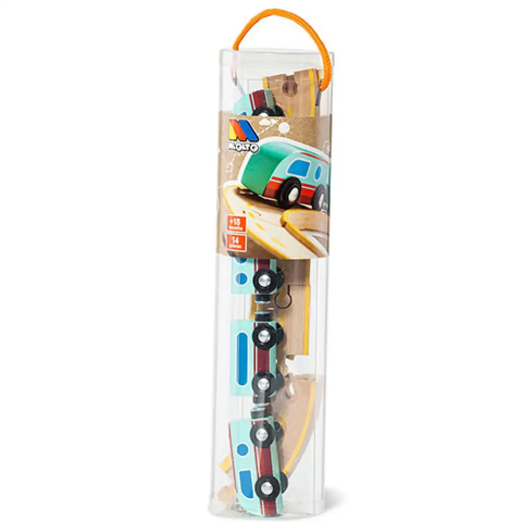 Minden vasútrajongó kisgyerek örülni fog egy ilyen vonatos játéknak, hiszen nem csak egy vonat, hanem egy pálya is található a domagban. A fából készült szerelvény négy kocsiból áll, amelyeket mágnessel lehet összekapcsolni, és természetesen a vonat mellett egy ovális pálya is a csomag része, amit a kicsik könnyedén egyedül is össze tudnak illeszteni. A Molto Fából készült játékait az FSC-nek megfelelően, fenntartható módon kiválasztott anyagokból és környezetbarát gyártási eljárással gyártja. A Molto Nature fajátékok kézzel festettek, nem mérgező, vízbázisú festékekkel, és megfelelnek a legszigorúbb biztonsági előírásoknak, így a gyerekek biztonságban játszhatnak vele.