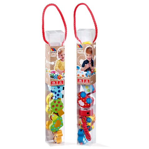 A figurás fűzős játék hatékonyan fejleszti a kisgyermekek szem-, illetve kéz koordinációs készségeit. A színes, fából készült játék lényege, hogy a kicsik a zsinórt átfűzzék egyenként a mókás ábrázolással ellátott állatokon, fán, illetve traktoron vagy éppen a különféle járműveken így azokat összekötve együtt eljussanak a farm útvonalához. A játék fejleszti a gyerekek önbizalmát is, hiszen sikerélményben részesülnek, mikor a játék végén az összes elemet összefűzték, melyet követően fantáziájukra bízhatják annak folytatását. A Molto Fából készült játékait az FSC-nek megfelelően, fenntartható módon kiválasztott anyagokból és környezetbarát gyártási eljárással gyártja. A Molto Nature fajátékok kézzel festettek, nem mérgező, vízbázisú festékekkel, és megfelelnek a legszigorúbb biztonsági előírásoknak, így a gyerekek biztonságban játszhatnak vele.