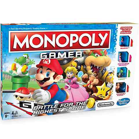 Egy igazi gamer-eknek készült társasjátékban bizonyíthatod rátermettséged, ahol a klasszikus Monopoly társasjáték szabályaira építkezve most egy egészen új világba csöppenhetsz! A Monopoly Gamer játékban az érméket kell gyűjtened Marioval, a Hercegnővel, Yoshival vagy épp Donkey Konggal, ám közben az ellenségekre is figyelned kell. Az ellenségek ellen szintén szerezhetsz pontokat, így még közelebb kerülhetsz a győzelemhez. A karakterek egyedi képességekkel bírnak, melyeket tovább is fejleszthetsz a különleges dobókocka segítségével.