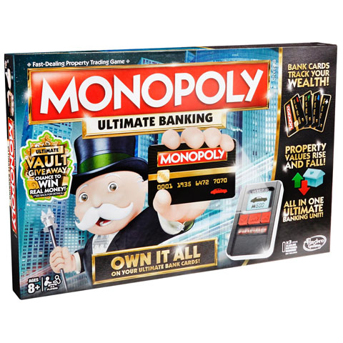 A Monopoly játékot aligha kell bemutatni bárkinek is, hiszen az egyik legrégebbi, és egyben a legnépszerűbb játékok között tartják számon mind a mai napig. Ez az elektromos változata a klasszikus Monopoly játéknak nagyon megkönnyíti a kereskedést. Főként az új Ultimate Banking kiadása. Ez ugyanaz a játék, melyben ingatlanokkal üzletelnek, de készpénz helyett bankkártyát használnak! Akár "paypass" rendszerrel! Válassz egy színes zsetont, utazz a játéktáblán és vásárold fel az összes ingatlant, amelyiken megállsz. A Monopoly Ultimate Banking játékban millióidat a saját elektronikus kártyádra teheted, és természetesen a győztes csak úgy mint a hagyományos játékban a legtöbb vagyont felhalmozó játékos lesz.
