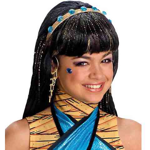 A legnépszerűbb Szörny Suli karakterek egyike Cleo de Nile, akinek bőrébe most Te is belebújhatsz egy kicsit. Az egyiptomi fáraók lányának jellegzetes frizurája még hitelesebbé teszi jelmezed, amiben a jelmezbálon ragyoghatsz, vagy akár csak az otthoni játék során hordhatod. Kezdődjön a Monster High játék!