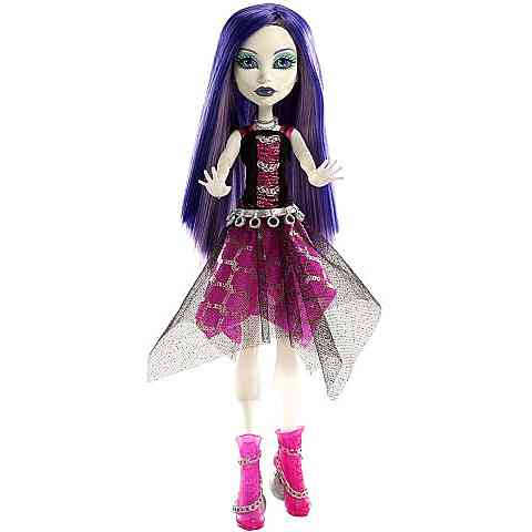 Egy gombnyomással máris életre keltheted a kedvenc Monster High szereplődet! A különleges baba olyan funkcióval rendelkezik, amivel elődei eddig még nem: világít és hangot is ad, amivel még izgalmasabbá teheted a szörnyen jó játékot! Spectra Vondergeist igazi kísértetek éltre keltett leszármazottja, így nem is lehetett kérdés, hogy a tanulmányait a Monster High suliban kezdi meg, szörny-társaival együtt.