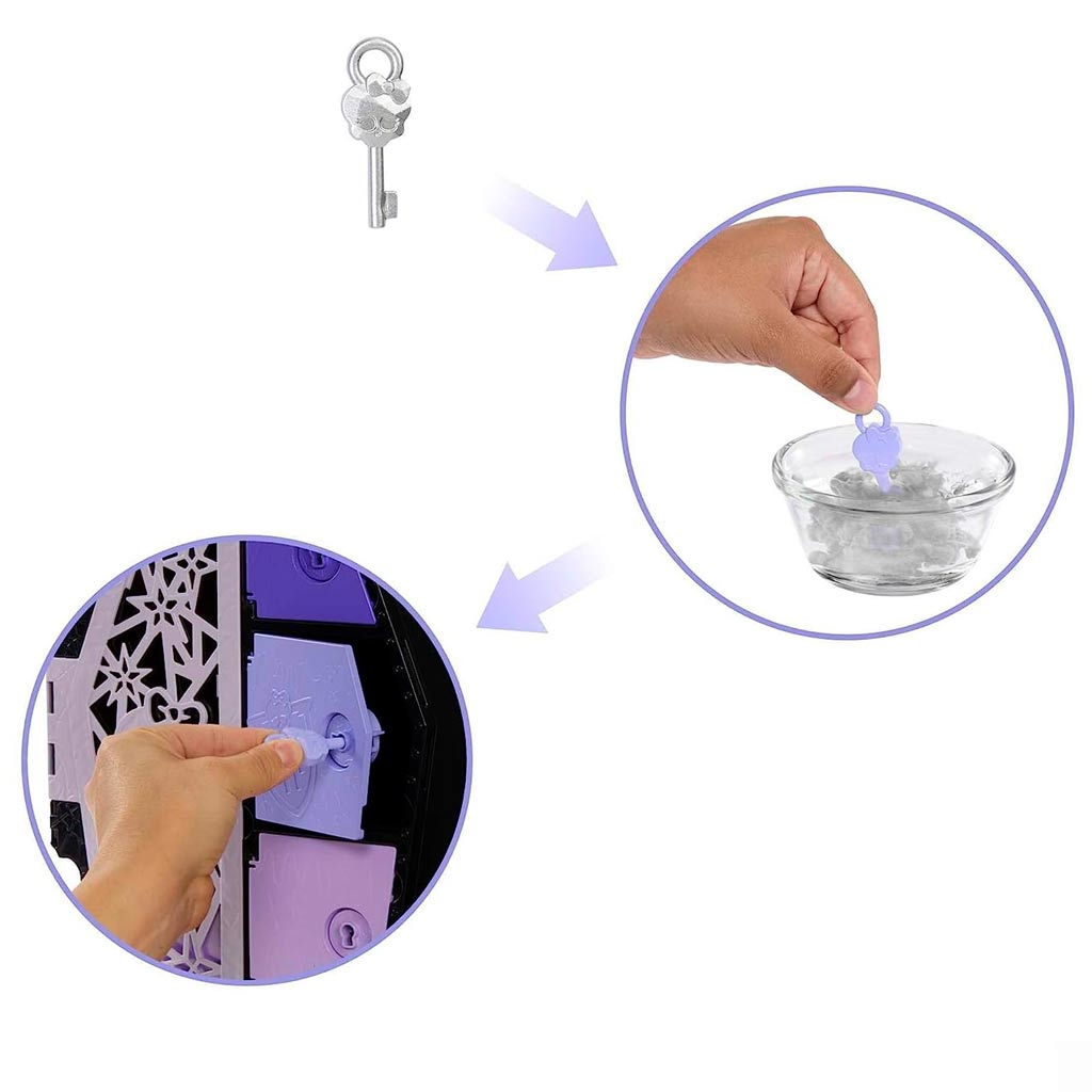 A Monster High világában rémesen jó meglepetések várnak, és a Szörnyen Jó Barátok Titkai - Rémbuli babák sorozat kicsomagolása garantáltan hátborzongatóan jó móka lesz. A készletben található több mint 19 meglepetés rémisztően jó ruhákat és tematikus kiegészítőket rejtenek. A kulcsok pedig igazán titokzatosak, végleges megjelenésüket csak melegvíz hatására mutatják meg, így minden lépés egy újabb rémisztő felfedezés lehet, ahogy leplezhető le a sok borzalmasan jó kiegészítő.