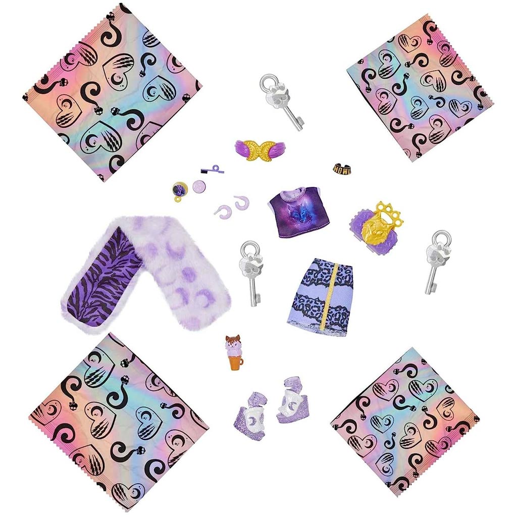 Ez a különleges baba egy koporsó alakú dobozban érkezik, ami már önmagában is izgalmas és rejtélyes. A koporsóban található titkos rekeszekben pedig meglepetés kiegészítők vannak elrejtve, amiket felfedezhetünk. A szekrények kulcsokkal nyithatók, így a gyerekek izgalmas pillanatokat élhetnek át, amikor kinyitják és felfedezik a rejtett kincseket. A meglepetés kiegészítők tovább fokozzák Clawdeen Wolf megjelenését és stílusát. Különféle divatos és rémisztően jó kiegészítők találhatók a dobozban, amelyekkel a gyerekek egyedi és lenyűgöző szetteket alkothatnak Clawdeennek.