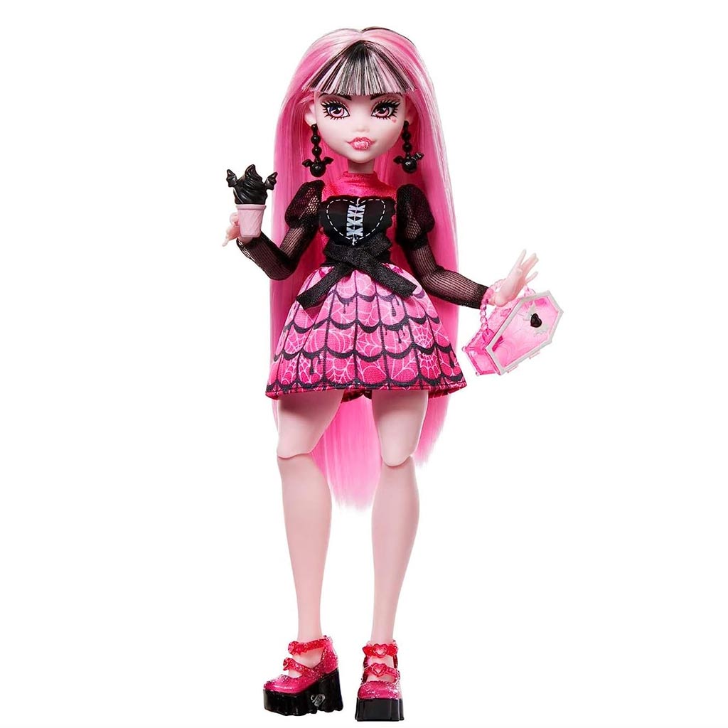 A Monster High Szörnyen Jó Barátok Titkai - Rémbuli babák sorozat megfelelő kombinációja a szörnyen izgalmas játékélménynek és a rejtélyekkel teli felfedezésnek. A Monster High - Rémbuli sorozat Draculaura babája egy varázslatos és rejtélyes játékfigura, aki a híres Drakula lánya. Draculaura a Monster High iskolában tanuló fiatal szörny, akinek karaktere a cuki stílus és a vámpírok legendás misztikuma tökéletesen ötvözi.