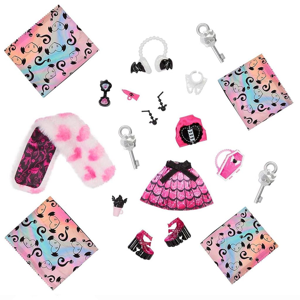 A meglepetés kiegészítők tovább emelik Draculaura megjelenését és stílusát. Különféle cuki és misztikus kiegészítők találhatók a dobozban, amelyekkel a gyerekek saját egyedi és varázslatos megjelenéseket hozhatnak létre Draculaurának.