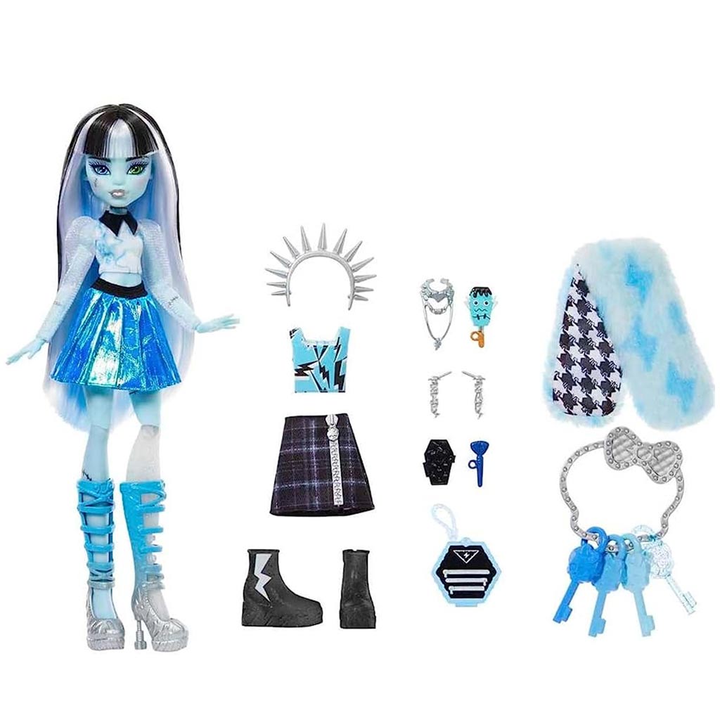 Ebben a szettben pedig Frankie Stein a híres Frankenstein szörny lányát találja majd gyermeked, aki a Monster High iskolában tanuló fiatal szörny, és a modern és stílusos divatvilággal ötvözi a szörnyen izgalmas történeteket.