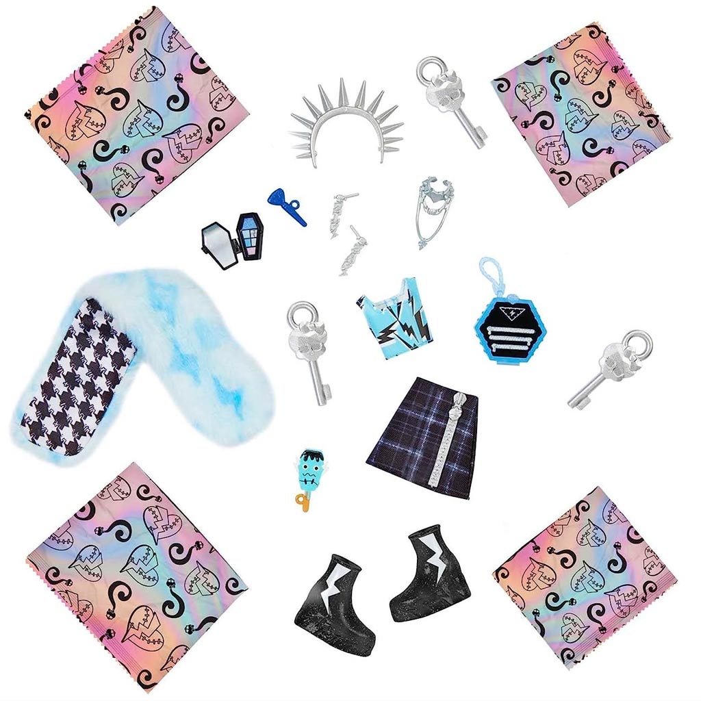 A meglepetés kiegészítők tovább fokozzák Frankie Stein karakterének megjelenését és stílusát. Különféle divatos és szörnyen izgalmas kiegészítők találhatók a dobozban, amelyekkel a gyerekek szabadon kifejezhetik kreativitásukat és létrehozhatnak egyedi megjelenéseket Frankie-nek. A baba mozgatható végtagokkal rendelkezik, ami lehetővé teszi, hogy a gyerekek szabadon formázzák Frankie testtartását és pózait. Ez fantasztikus lehetőséget nyújt a kreatív szerepjátékhoz és a történetek megalkotásához.