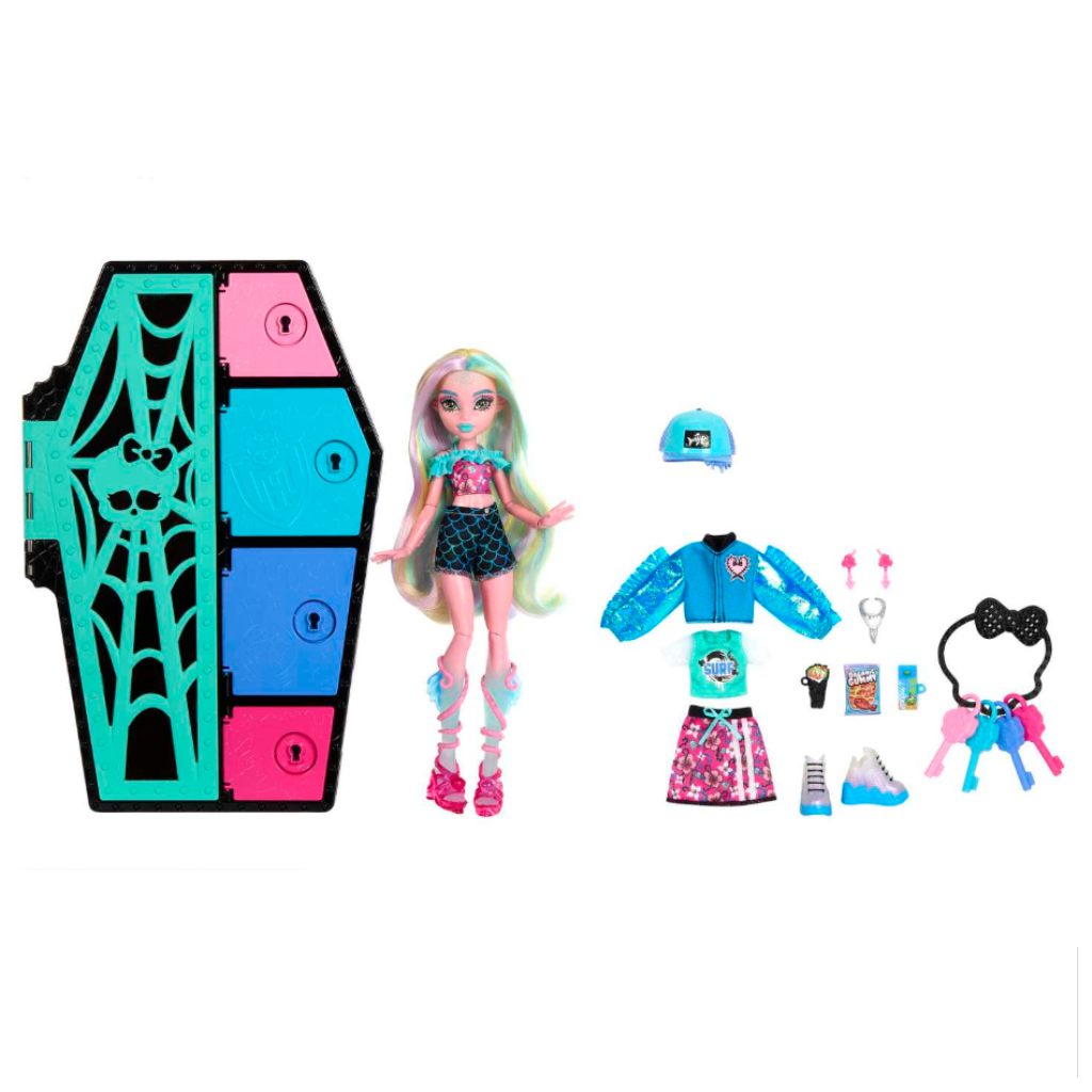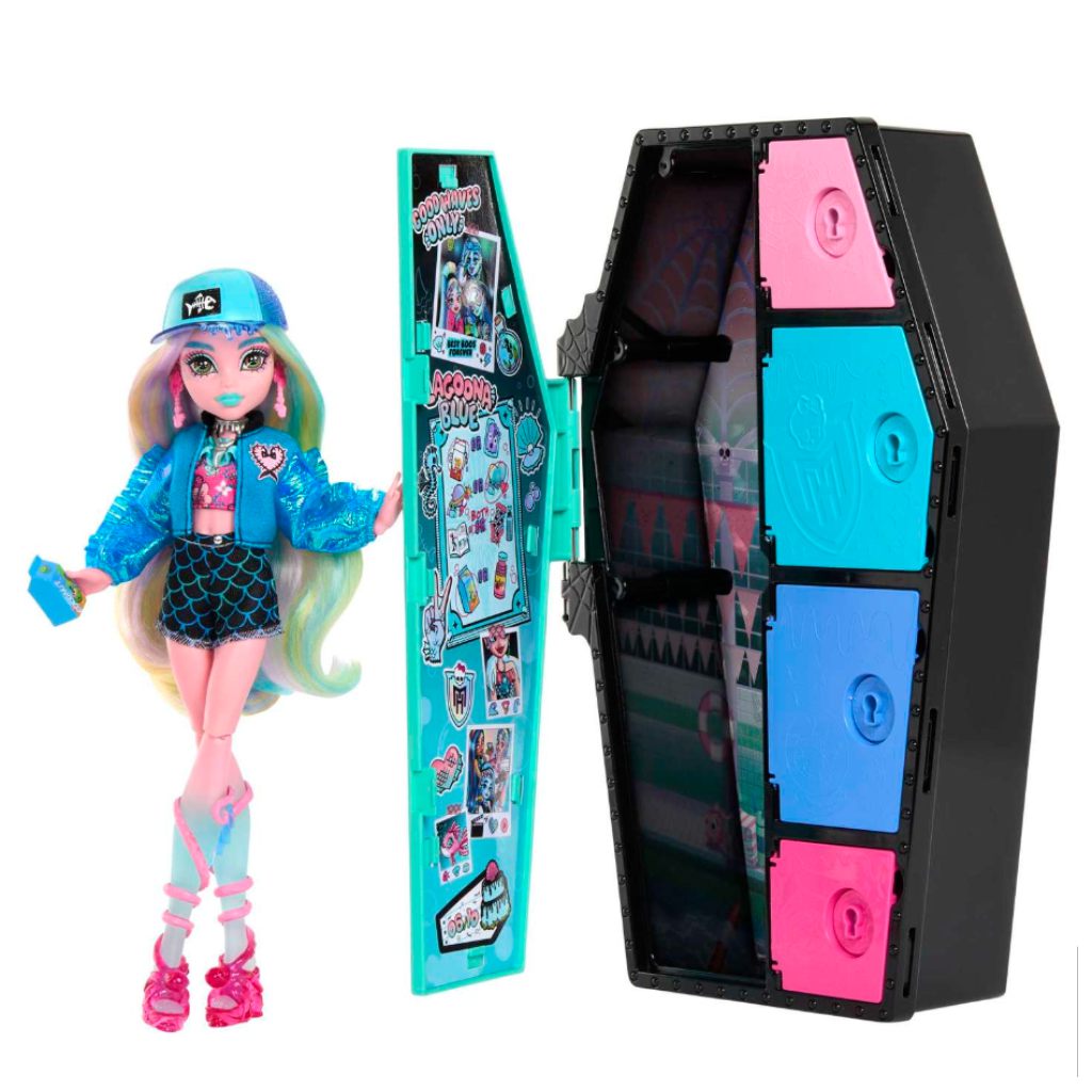 Lagoona Blue vagány stílusa gyakran tükrözi vízi életét: pikkelyek, hálós kiegészítők és más tengerhez kapcsolódó elemek gyakran jelennek meg ruházatában és kiegészítőiben. Ő az egyik leglazább és legnyugodtabb karakter a Monster High-ban, ami valószínűleg a tengeri élet természetes ritmusához kapcsolódik. A szörnybiológia óra éppen véget ért a Monster High sulibanban, és itt az ideje egy iskola utáni szörnyruha kiválasztásának, hogy a lányok meghódítsák a várost. A Monster High Szörnyen jó Rémköznapok babák kísértetiesen izgalmas kicsomagolási élményt kínálnak, több mint 19db meglepetéssel, amelyek egytől egyig divatos, tematikus darabok. Kombináld őket kreatív módon több mint 125 különbözőféle megjelenésért. A Color Revea technológia és a lépésről lépésre történő leleplezés varázslatot és titokzatosságot kölcsönöz, míg a koporsó alakú tematikus tároló tökéletes a tároláshoz is. A baba rendkívül részletgazdag kidolgozást kapott, kezei és lábai mozgathatóak, feje forgatható a még jobb játékélmény érdekében. A baba mérete kb. 28cm-es.