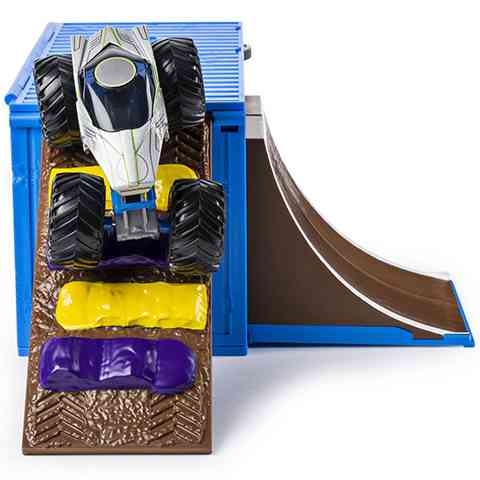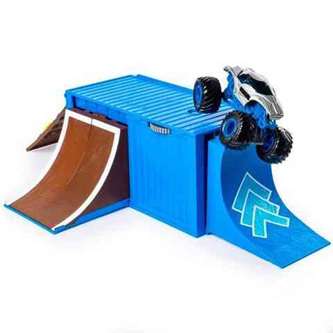 A Monster Jam viadalok hatalmas népszerűségnek örvendenek a tengeren túl, ami nem is csoda, hiszen a mutatványok főszereplői a hatalmas Monster Truck járgányok, amelyek gigantikus kerekeikkel és brutálisan erős motorjaikkal hajmeresztő mutatványokat produkálnak az arénában. A gyerekek most ezt a show-t otthon a gyerekszoba szőnyegén is eljátszhatják ennek a pályaszettnek köszönhetőn. A csomag egy konténert rejt magában, azonban a konténerhez több pályaelemet is lehet csatolni, a roncskocsikkal kirakott rámpától, az íves ugratóig vagy éppen a hátra szaltót is lehetővé tévő pályaelemig. A készletben egy kisautó is található, így azonnal kezdődhet a bemutató!