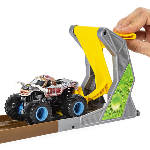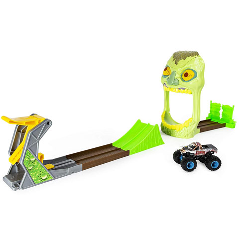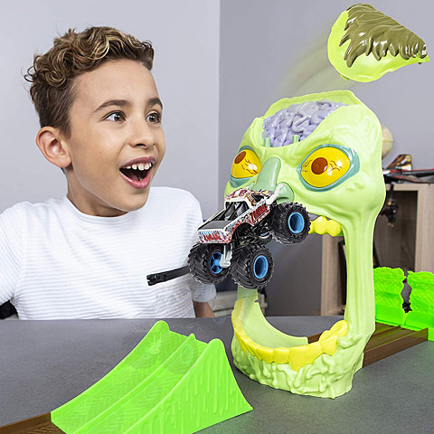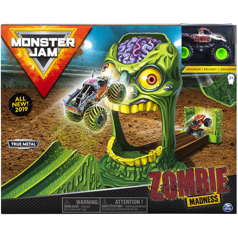 Hatalmas ugratással veheti kezdetét a Monster Jam verseny, melyet a gyerekek indíthatnak el! A látványos Zombie Madness játékszett rendkívül izgalmas ugratásokat tartogat a gyerekek számára, hiszen a kézi kilövővel ők maguk indíthatják útnak a kocsit, melynek az ugratóra hajtva egy hatalmas zombi fejen át vezet az útja! Azonban ha a sebesség nem megfelelő. a kocsi épp a zombi orrának ütközik és a feje lerepül a helyéről. A vagány Monster Jam kocsival remek játékélmény várja a gyerekeket!