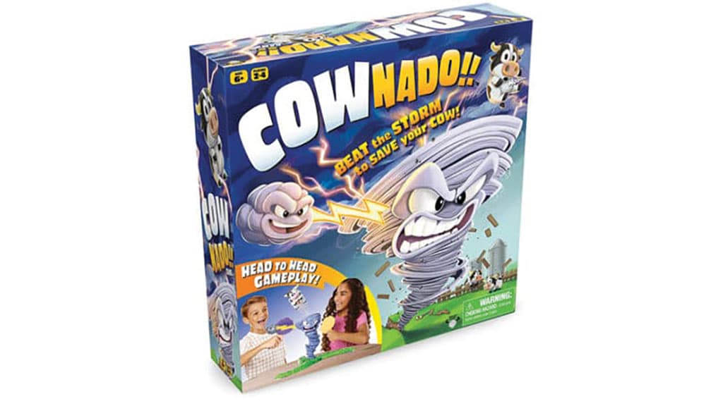 Ebben a társasjátékban a játékosok beteszik a tehenet egy csavarodó tornádóba, majd ütögetik a felhőt ide-oda. Amikor a tehén kirepül, a tornádón lévő nyíl mutatja, hogy ki szerezte a pontot. Ez a játék izgalmas és vicces pillanatokat garantál, miközben a játékosok figyelik, mikor repül ki a tehén, és ki lesz a szerencsés pontszerző. A játék remek szórakozást nyújt családoknak és baráti társaságoknak egyaránt.