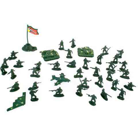 Itt a lehetőség, hogy valódi csatatérré változtasd a szobádat! Természetesen csak átvitt értelemben, hiszen a műanyag katonák remek szórakozásra adnak lehetőséget. Ebben a szettben rengeteg katona figurát találsz, mellettük pedig tankokat és repülőgépet is. Alakíts belőlük két csapatot és már indulhat is a roham. A cél, hogy elfoglaljátok az ellenséges bázist, melyet egy zászló jelöl. A műanyag katonák már hosszú évek óta a legkedveltebb játékok közé tartoznak, fedezd fel te is az izgalmakat, melyet ez a remek szett tartogat neked!