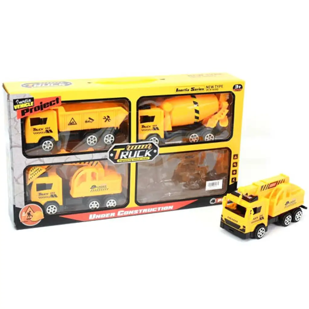 A gyerekek egycsapással négy nagyon hasznos munkagéppel bővíthetik a kisautó készletüket, hiszen ebben a csomagban a négy leggyakrabban használt munkagép kapott helyet. A klasszikus sárga színű járgányok között a markoló, a betonkeverő, a darusautó és a billencs is megtalálható, így szinte minden építési folyamatot el tudnak végezni. A készletben található kb tizenöt centiméteres járgányok részletgazdag kidolgozást kaptak, a szabadonfutó kerekeikkel minden terpviszonyok között képesek ellátni a feladatukat.
